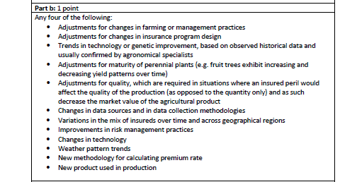 The BattleCodes at the bottom of the article mention 5 adjustments to historical yields. Does this mean the 5 TRIGGERS for adjustments like changes in farming or management practices, or quality variation of crop from year-to-year? Or are there 5 actual adjustments that I missed?