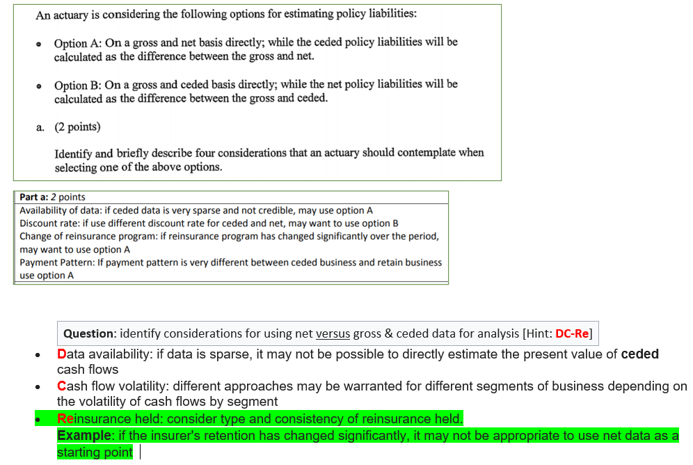 Hi Graham, for a change in reinsurance program (or retention) , the solution to an old exam problem is suggesting to use gross and net data and then derive ceded. The wiki states that it may not be appropriate to use net data as a starting point. The format of these 2 questions is different so I am trying to connect the dots and understand how to approach these differently formatted questions. Thanks!