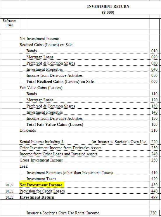 I don't understand how the Investment Yield is calculated as to me the formula is : 2*(Net_Investment_Income + AOCI)/(Inv. Asset at beg of period + Inv. Asset at end of period - Net_Investment_Income - AOCI) but we are adding the following component to the Investment return : Share of Net Income (Loss) of Equity Accounted Investees, which do not belong to the Net_Investment_Income. I thought the Net Investment Income was the one attached (coming from the Invetsment return page 40.74 at line 430, thank you!
